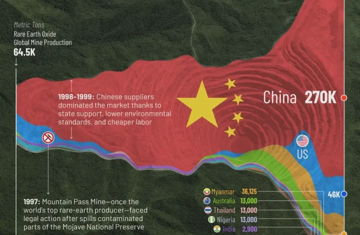 تحلیل تولید عناصر نادر خاکی در ۳۰ سال گذشته و چگونگی مسلط شدن چین + اینفوگرافی
